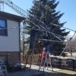 Ray contacted me end of last summer on 2M, we chatted for a while and informed me that he needed help fixing his station. He has Rotor and antenna problems, in several discover visits it was confirmed something is wrong on the tower. A few days later we cranked the tower over to take a look. Very shortly upon inspection all coax cables were bad-damaged since they have been on the tower for close to 40 years. In the meantime Ron KD9IPO (donated for temp use) helped me install an end feed wire in -20 degrees weather, to get Ray back on the air until we could solve the coax problems etc. The early volunteers were Mike Sorenson, Peter Mazuik, Rob Glowacki, and Dirk Smith. Hence from that point the project was planned and scheduled during warmer weather, which turned out to be Saturday, March 10, 2018.