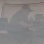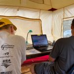 The weather was doing it’s best to make it hard for us. At one point, the wind gusts were so strong that the SSB tent stakes came loose. I was inside the tent holding the mic with one hand, and pushing the inside of the tent away with the other, and thanks to the heroic efforts of Chris (AC9GN) and Mike (AC9CG) who managed to keep the tent from flying away! (see pics)